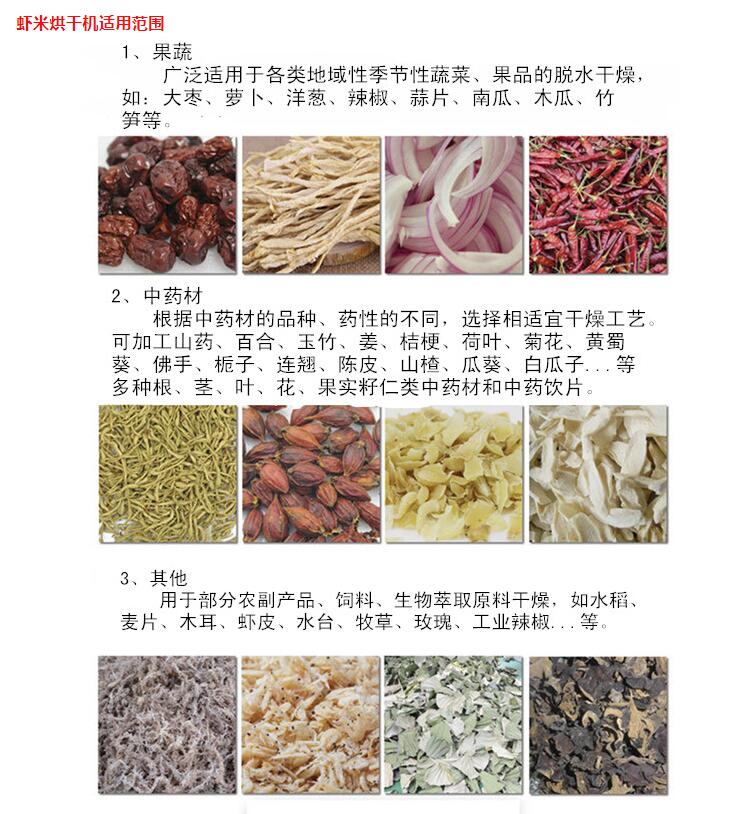 蝦米烘干機(jī)適應(yīng)物料:
