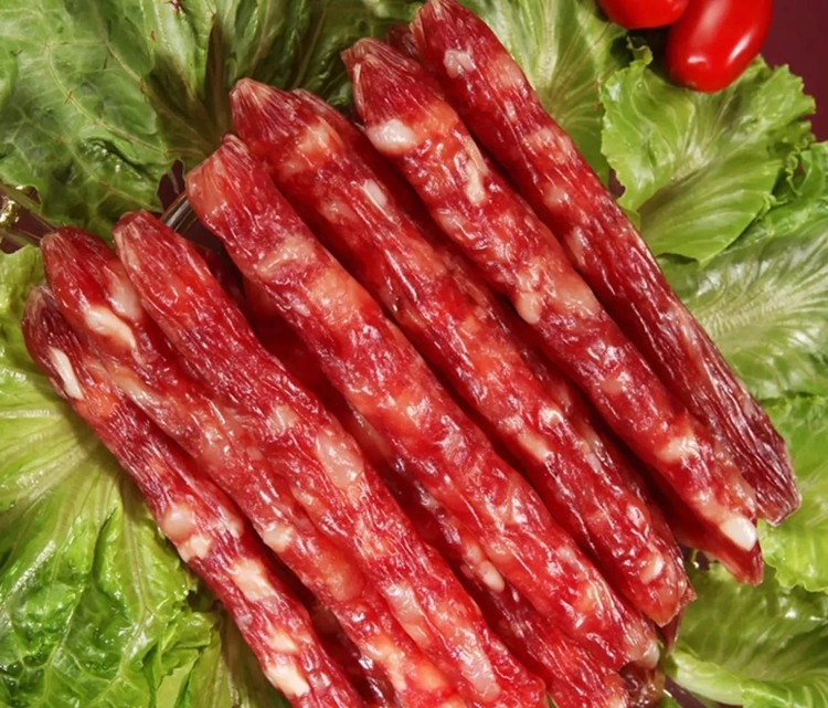大有愛吃的廣式香腸占有中國香腸市場的60%以上,廣式香腸是將瘦肉經(jīng)粗絞、肥膘經(jīng)切丁,配以輔料,灌入天然腸衣或人造腸衣經(jīng)晾曬烘干而成;由于廣式香腸加入較多的蔗糖和酒,加之高溫高濕的環(huán)境,使得廣式香腸在加工、儲藏和銷售過程中很容易形成風(fēng)味物質(zhì)。
